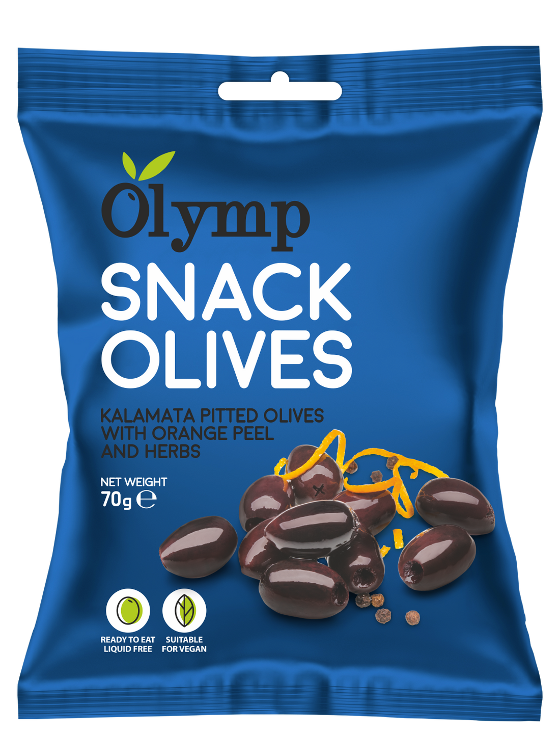 Olymp snack ochutená kalamata s masťovanými olivkami s oranžovou koreňou 70 g