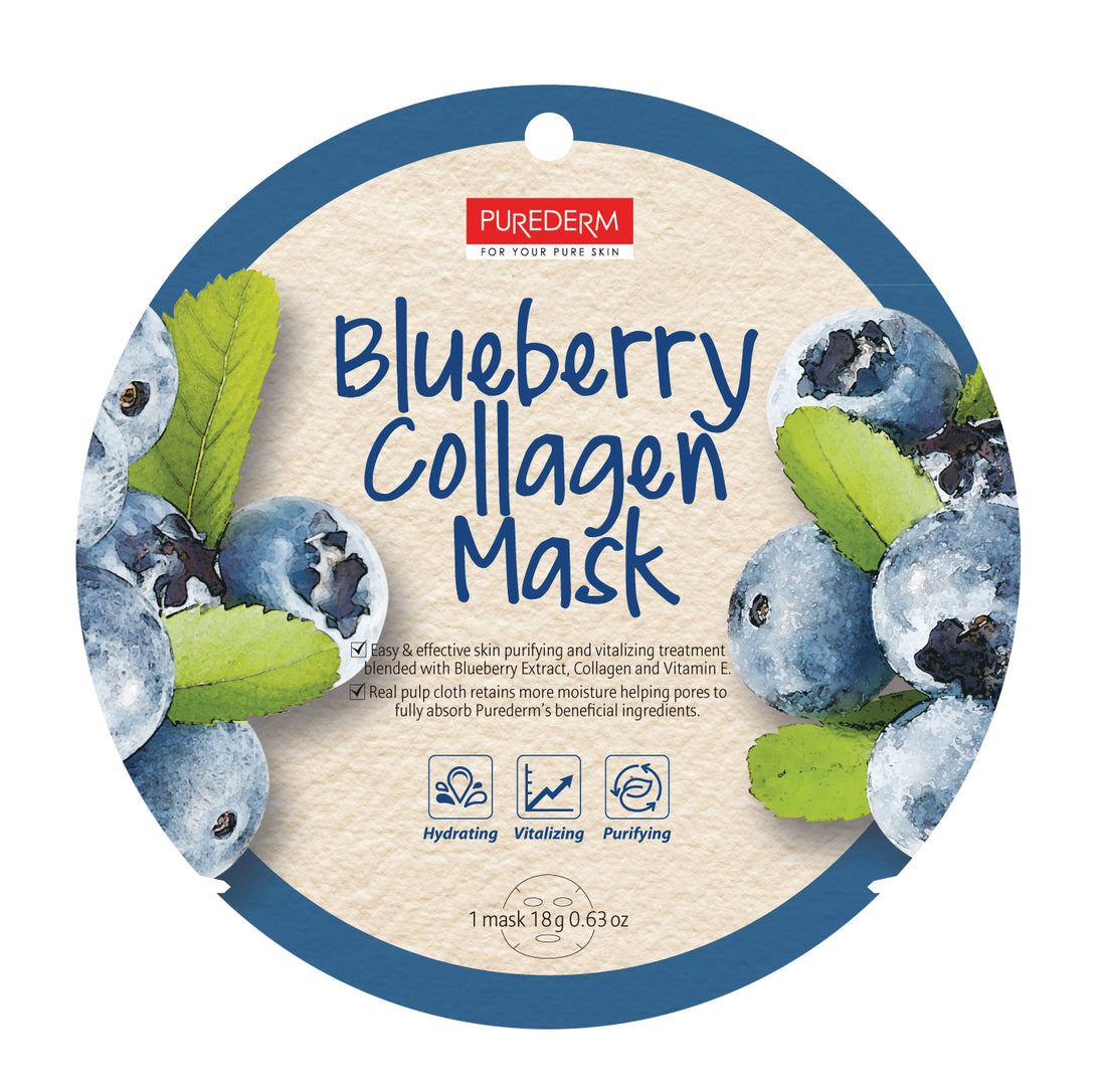 Purederm kolagénová maska na tvár v plátne s čučoriedkami 18g - 81609