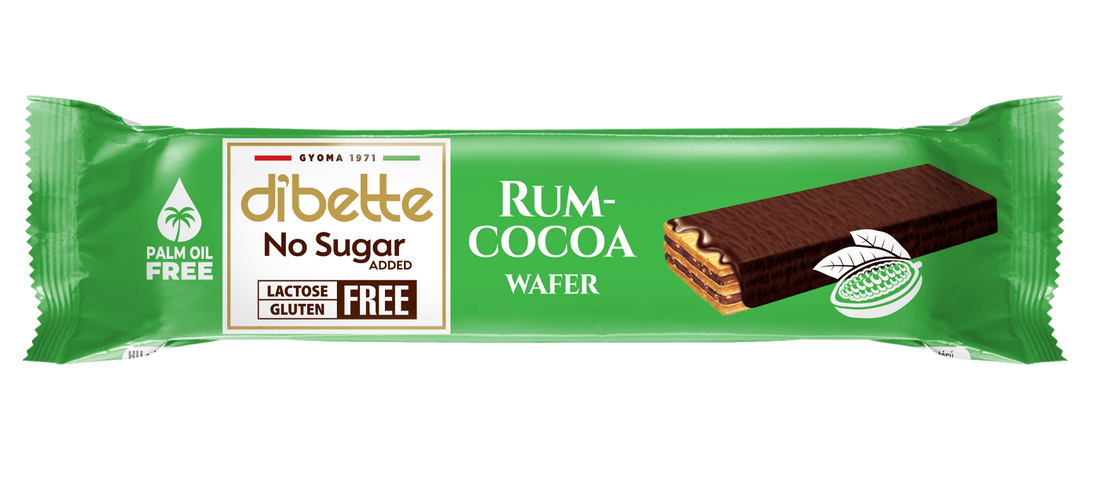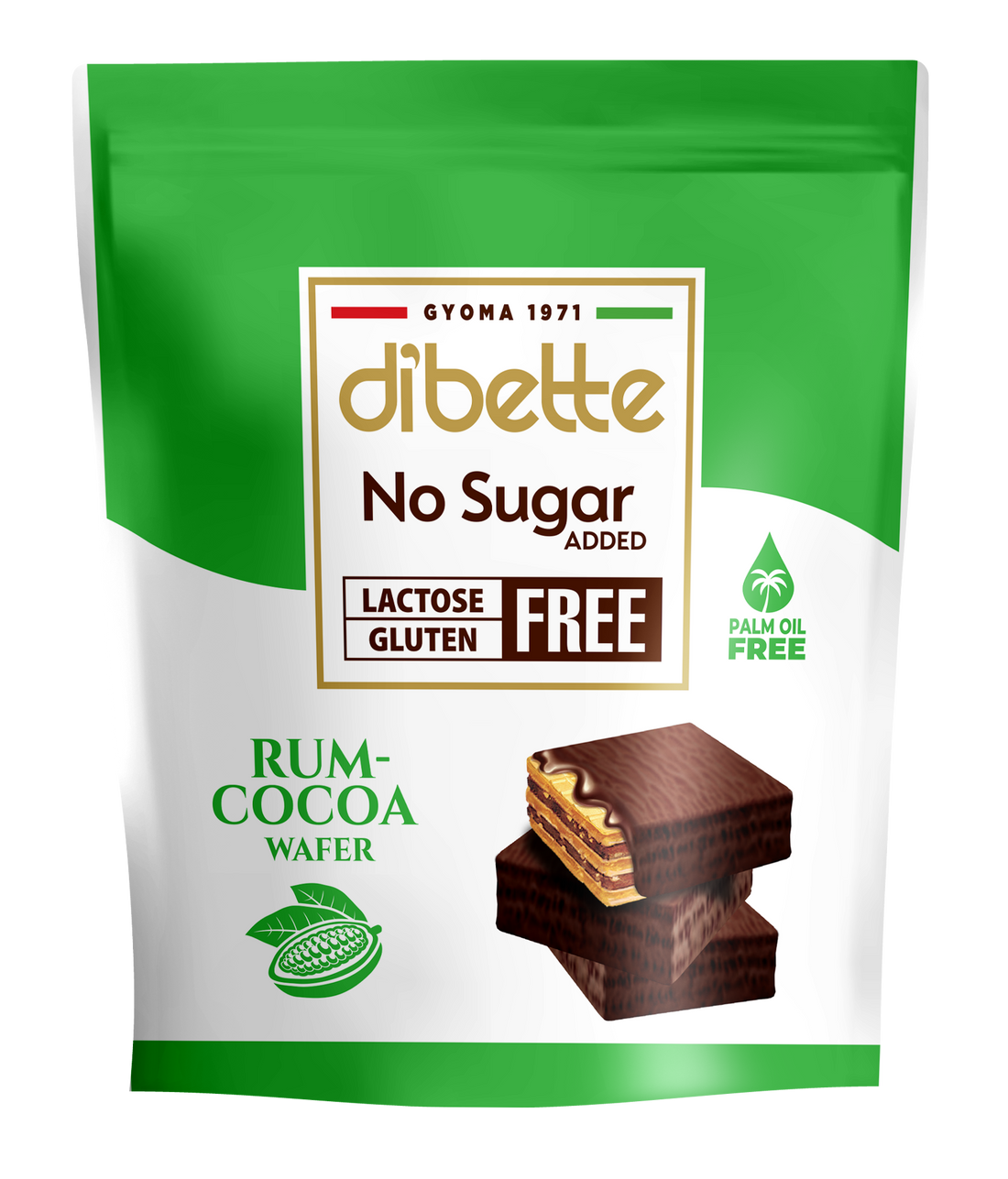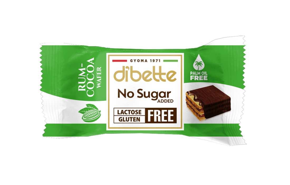 Dibette nas ostyakocka plnená kakaovou krémou s laktózou, palmovou, bezgluténovou rumou, hcn, so sladidlami 10 g