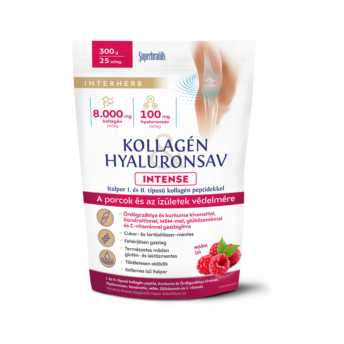 Interherb Kolagén a Kyselina Hyalurónová Intense, prášok s malinovou príchuťou 300 g - 95909