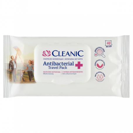 Cleanic Osviežujúce antibakteriálne vlhčené obrúsky cestovné balenie 40 ks - 91736