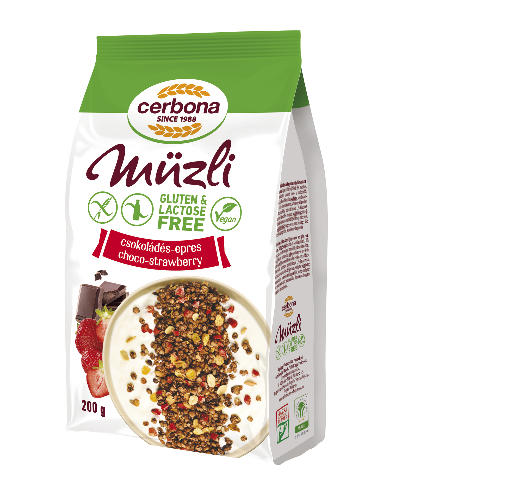 Zloženie: extrudované obilné vločky 38% (kukuričná múčka, kakaový prášok, emulgátor: mono- a diglyceridy mastných kyselín), arašidy 15%, glukózo-fruktózový sirup, ploché sójové vločky, slnečnicové semienka, rastlinný tuk (palmový), inulín (rastlinné vlákniny), kakaový prášok s nízkym obsahom tuku, maltodextrín, zvlhčovadlo: sorbitol; čokoláda 1,7% (kakaová hmota, cukor, kakaový prášok s nízkym obsahom tuku, emulgátor: sójový lecitín; aróma), lyofilizované kúsky jahôd 1,2%, arómy, emulgátor: sójový lecitín; regulátor kyslosti: kyselina jablčná.