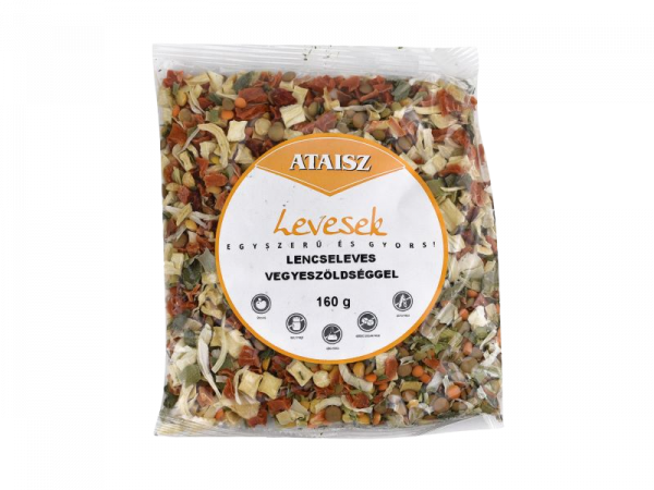 šošovica (Kanada), žltý hrach (Ukrajina), červená šošovica (Turecko), sušená zelenina (mrkva, koreň a listy petržlenu (EÚ), pór a červená cibuľa (Čína)).