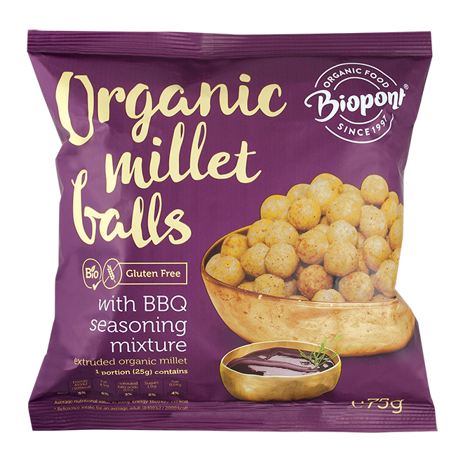 Lúpané proso*, slnečnicový olej*, mletá sladká paprika*, morská soľ, údená sladká paprika*, cibuľový prášok*, cesnakový prášok*, *=Zložka z kontrolovaného ekologického poľnohospodárstva