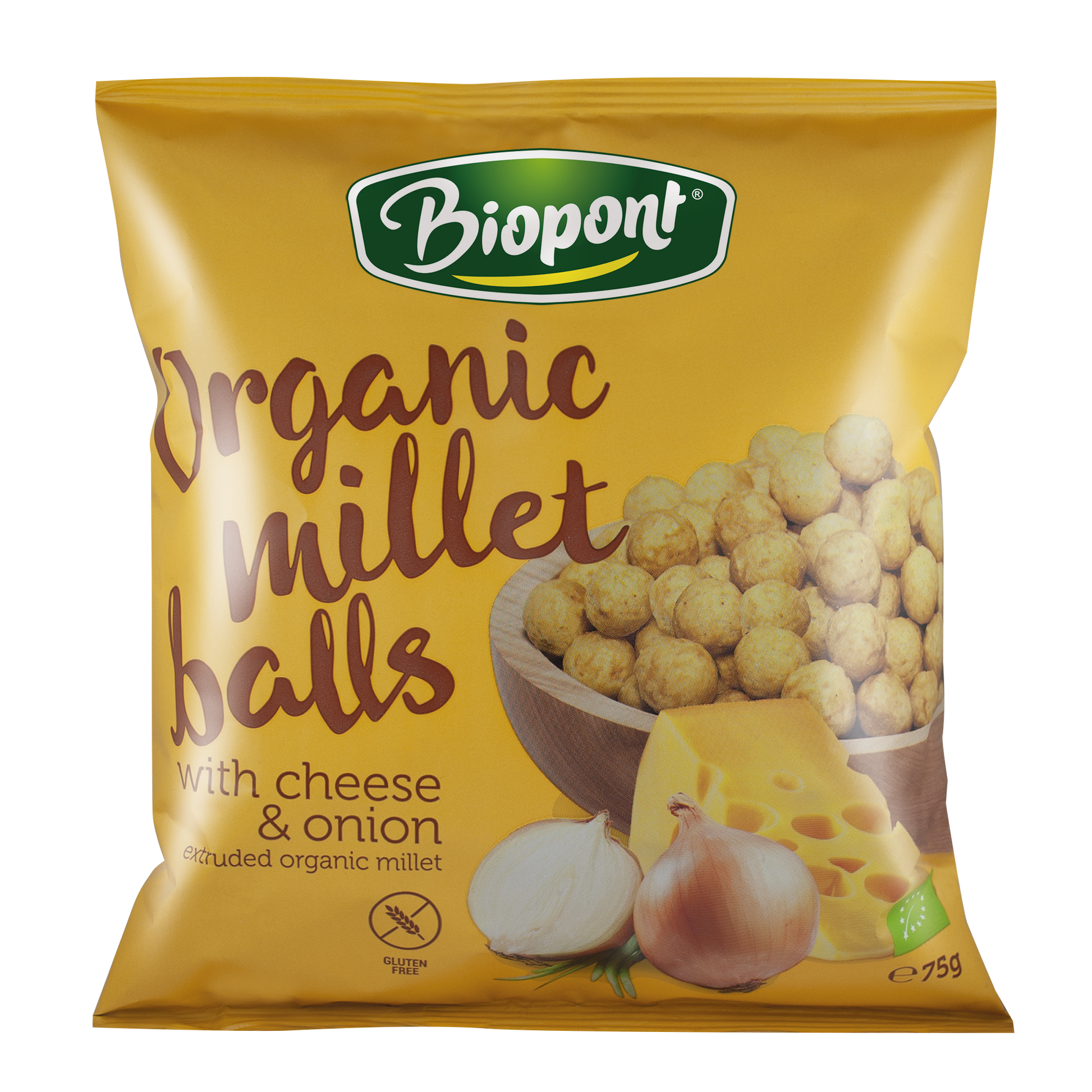 lúpané proso*, slnečnicový olej*, korenie* (cibuľový prášok* 1,1 %, pažítka*, chilli*), ryžová múka*, čedarový prášok* 1,8 %, morská soľ, prírodný trstinový cukor*, kvasnicový extrakt*, maltodextrín*, biely vínny ocot*. Zložky označené * pochádzajú z kontrolovaného ekologického poľnohospodárstva.