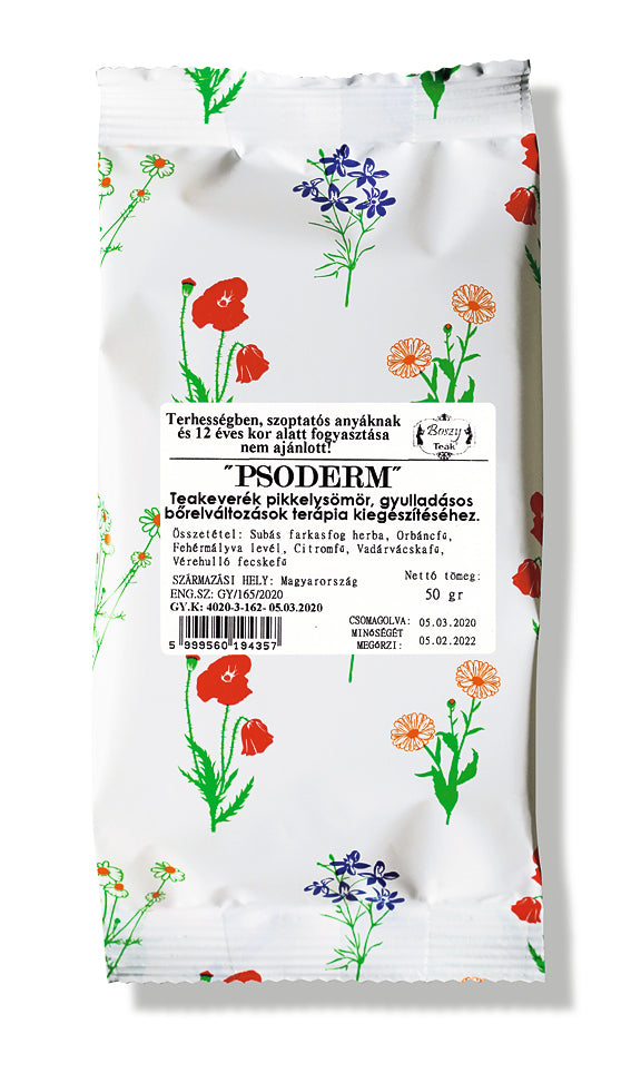 Bylina štetca, ľubovník bodkovaný, list ibiša lekárskeho, medovka lekárska, fialka trojfarebná, lastovičník väčší; na doplnkovú terapiu psoriázy a zápalových kožných zmien.