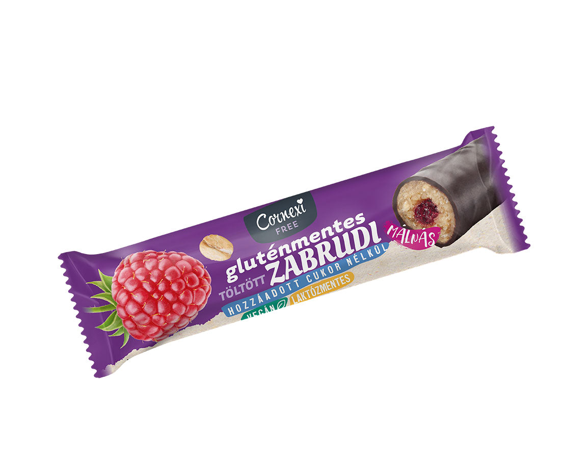 Ovsené vločky 34%, kakaová poleva 17% [cukor, čiastočne hydrogenovaný rastlinný tuk (palmojadrový), nízkotučný kakaový prášok 15%, emulgátory: lecitíny a polyglycerol-polyricinoleát, aróma], malinová náplň 14% [cukor, fruktózo-glukózový sirup, jablkové pyré, malinové pyré 12%, želírujúca látka: pektíny; potravinárska kyselina: kyselina citrónová; koncentrát čiernej reďkovky, aróma, konzervačná látka: sorban draselný], glukózový sirup, fruktózo-glukózový sirup, rastlinný tuk (palmový), ovsená múka, zvlhčovadlo: glycerol; maltodextrín, emulgátor: lecitíny (sója); arómy, jedlá soľ, potravinárska kyselina. Kyselina citrónová, konzervačná látka: sorban draselný. Môže obsahovať stopy arašidov, orechov, sezamových semienok a mliečnych výrobkov.
