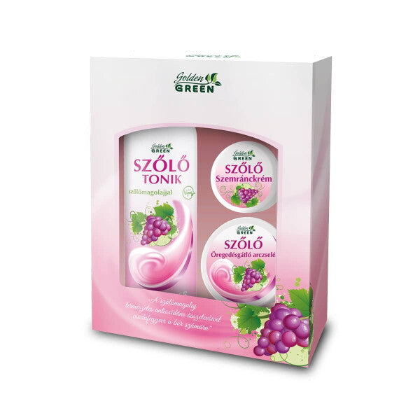Zloženie: Szőlő Arctisztító Tonik 250 ml, Szőlő Szemránckrém Kollagénnel 30 ml, Szőlő Öregedésgátló Arczselé 100 ml