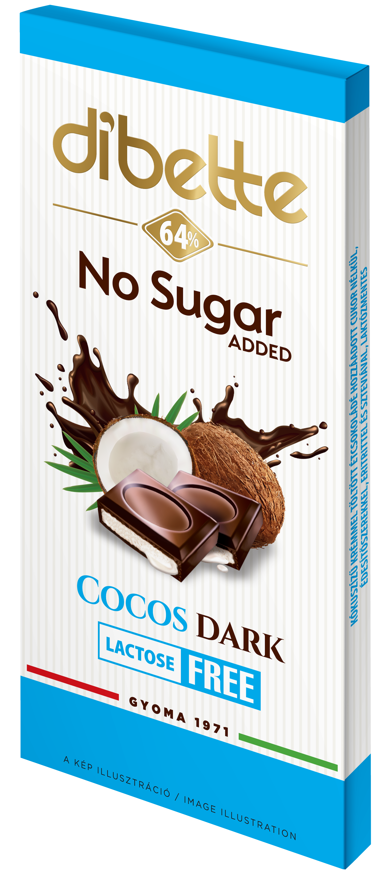 Horká čokoláda 65% (kakaová hmota, sladidlá: erytritol, glykozid odvodený zo steviolu (0.02%), kakaové maslo, emulgátory: slnečnicový lecitín, aróma), krém s kokosovou príchuťou 35% (nehydrogenovaný rastlinný tuk: palma, bambucké maslo, sladidlo: erytritol, kokosové mlieko v prášku, tapioková múka, emulgátor: slnečnicový lecitín, aróma).