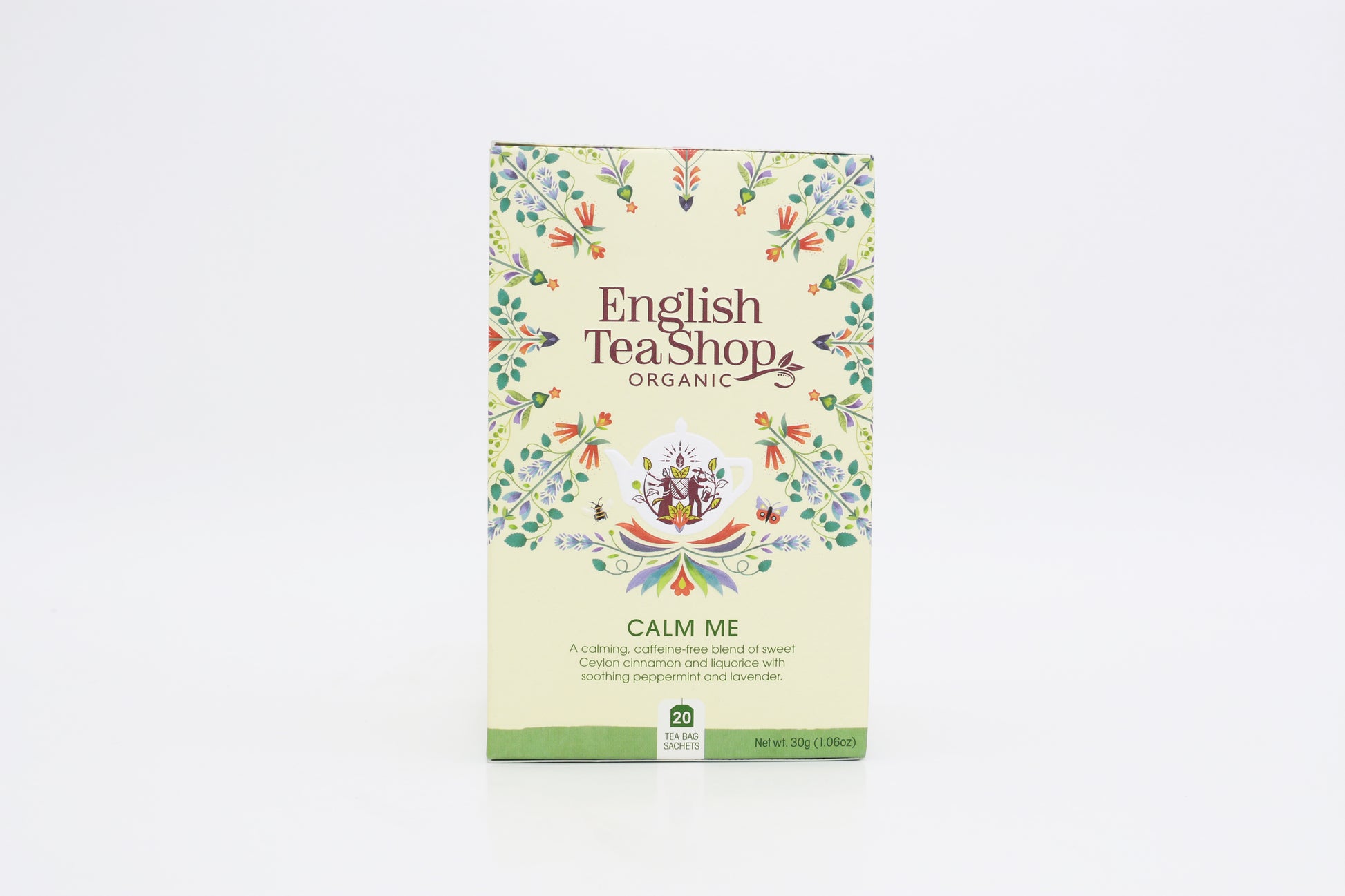 Škorica 40%, mäta pieporná* 31%, sladké drievko*¹ 15%, levanduľa* 14%. *Z certifikovaného ekologického poľnohospodárstva. ¹Obsahuje sladké drievko. Nadmerná konzumácia by sa mala vyhnúť, ak máte vysoký krvný tlak.