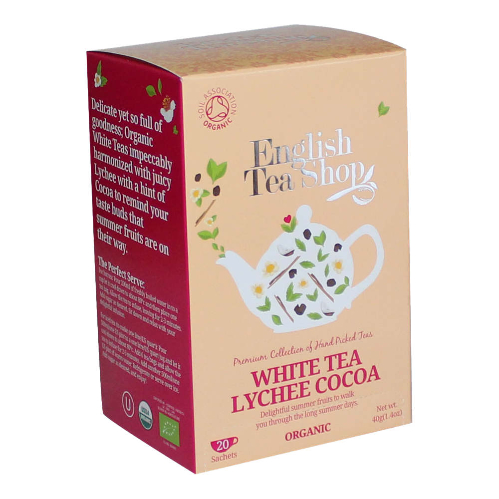 Biely čaj* 77%, škorica* 10%, kakao* 7%, prírodná aróma liči 2,75%, prírodná aróma kokosu 2,25%, kokos* 1%. *Z kontrolovaného ekologického poľnohospodárstva.