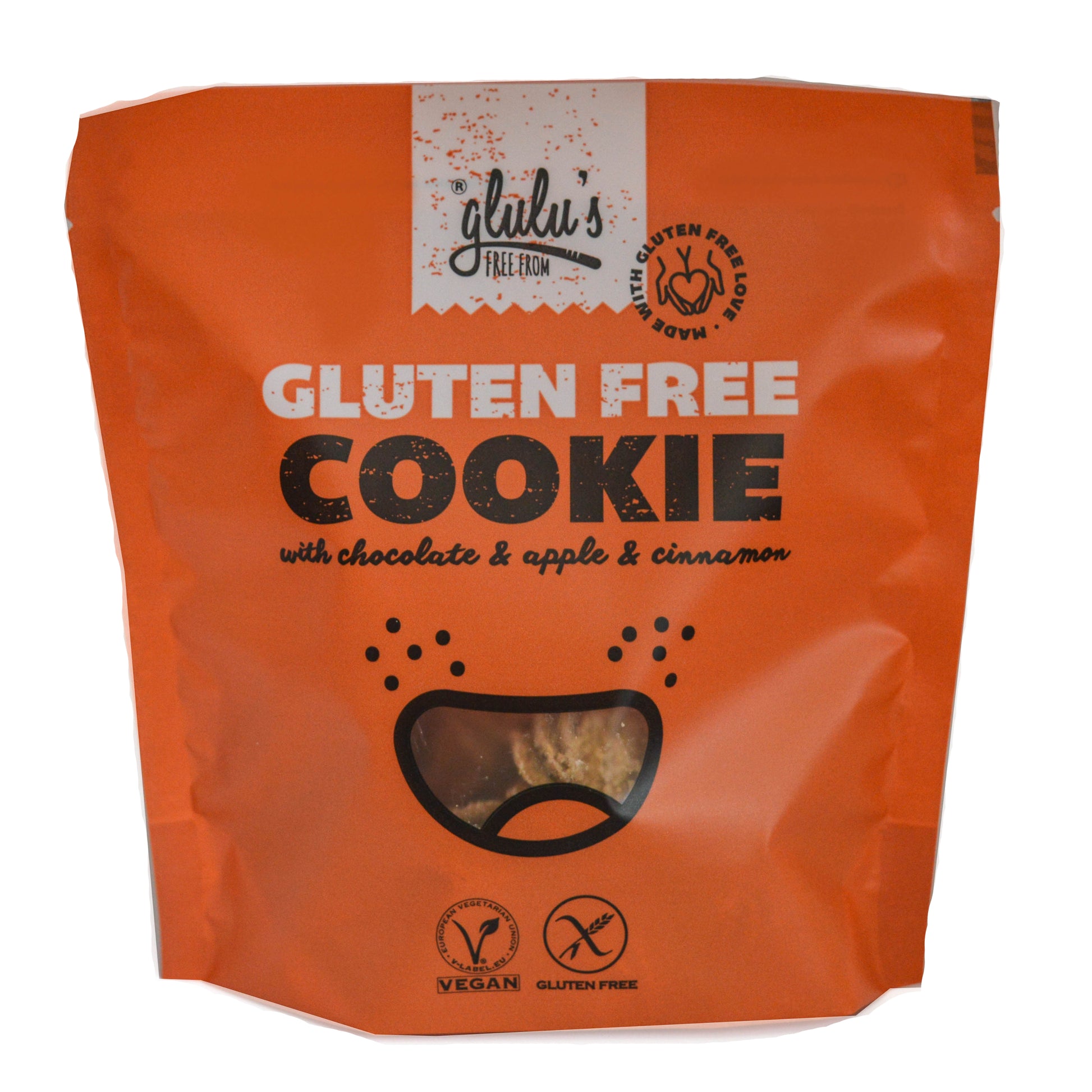 voda, cukor, hnedá ryžová múka, kokosový olej, biela ryžová múka, biela ryžová krupica, horká čokoláda 6% (kakaová hmota, cukor, kakaové maslo, nízkotučný kakaový prášok, emulgátor: slnečnicový lecitín, aróma), bezgluténová ovsená múka, kypriaci prášok (objemové činidlá (uhličitany sodné, difosfáty), kukuričný škrob), šupky psyllia, škorica 0,3%, prírodná jablková aróma 0,2% (aromatické látky, propylénglykol), objemové činidlo (hydrogenuhličitan sodný), himalájska soľ.