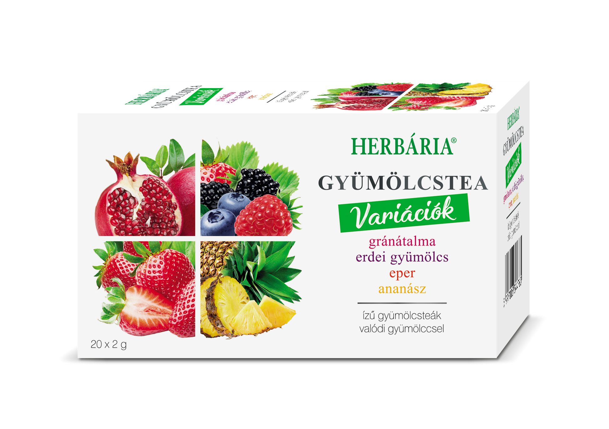Granátové jablko: jablčná dužina, kvet ibišteka, prášok z červenej repy, list čučoriedky, šípkový prášok, jablková aróma (4%), granátová aróma (3%), pomarančová kôra, šťava z granátového jablka (0,35%), maltodextrín. Lesné ovocie: kvet ibišteka, jablčná dužina, list černice, kyselina citrónová, aróma černice (2,5%), arómy (koncentrát čiernych ríbezlí, aróma čiernych ríbezlí) (2,5%), arómy (koncentrát maliny, aróma maliny) (1,5%), list jahody, šípkový prášok (1%), malinová dužina (1%), pomarančová kôra, černicová dužina (1%), aróma jahody (0,25%). Jahoda: jablčná dužina, kvet ibišteka, prášok z červenej repy, list čiernych ríbezlí, aróma jahody (5%), jarabina, šípkový prášok, pomarančová kôra, jahoda (0,5%). Ananás: kvet ibišteka, jablčná dužina, šípkový prášok, sladké drievko, pomarančová kôra, aróma ananásu (5%), ananás (1%).