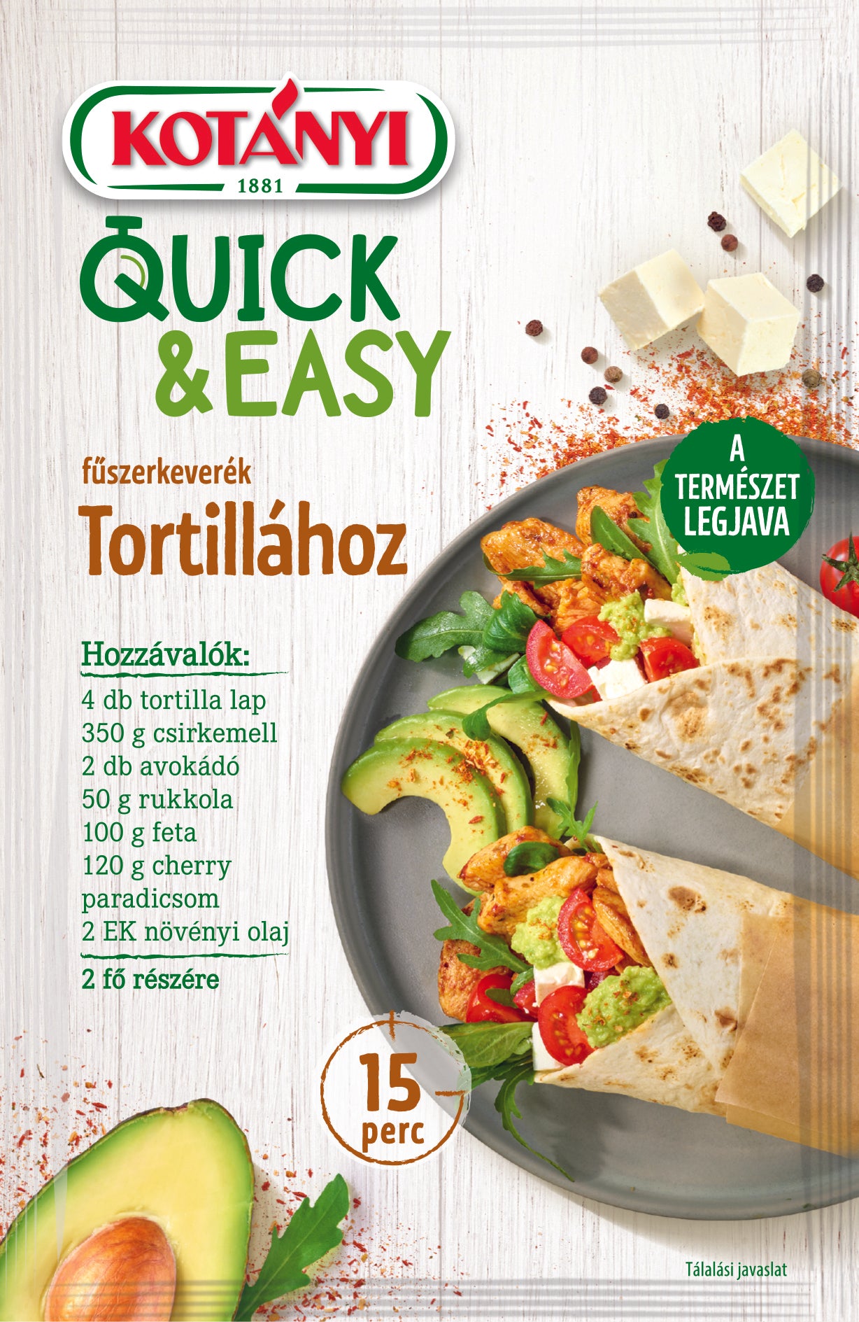 Neobyčajne jemná chuť z len niekoľkých ingrediencií, za 15 minút: Konečne je tu koreninová zmes Quick&Easy pre kuracie tortilly, ktorá okamžite vyrieši váš problém „čo dnes uvariť“. Zloženie: paradajková vločka (paradajkový koncentrát, kukuričný škrob), jodizovaná morská soľ (morská soľ, jodičnan draselný), cesnak, cibuľa, paprika, koriander, čierne korenie, zázvor, oregano, čili, údená paprika (paprika, dym), rímska rasca, kukuričný škrob, petržlen.