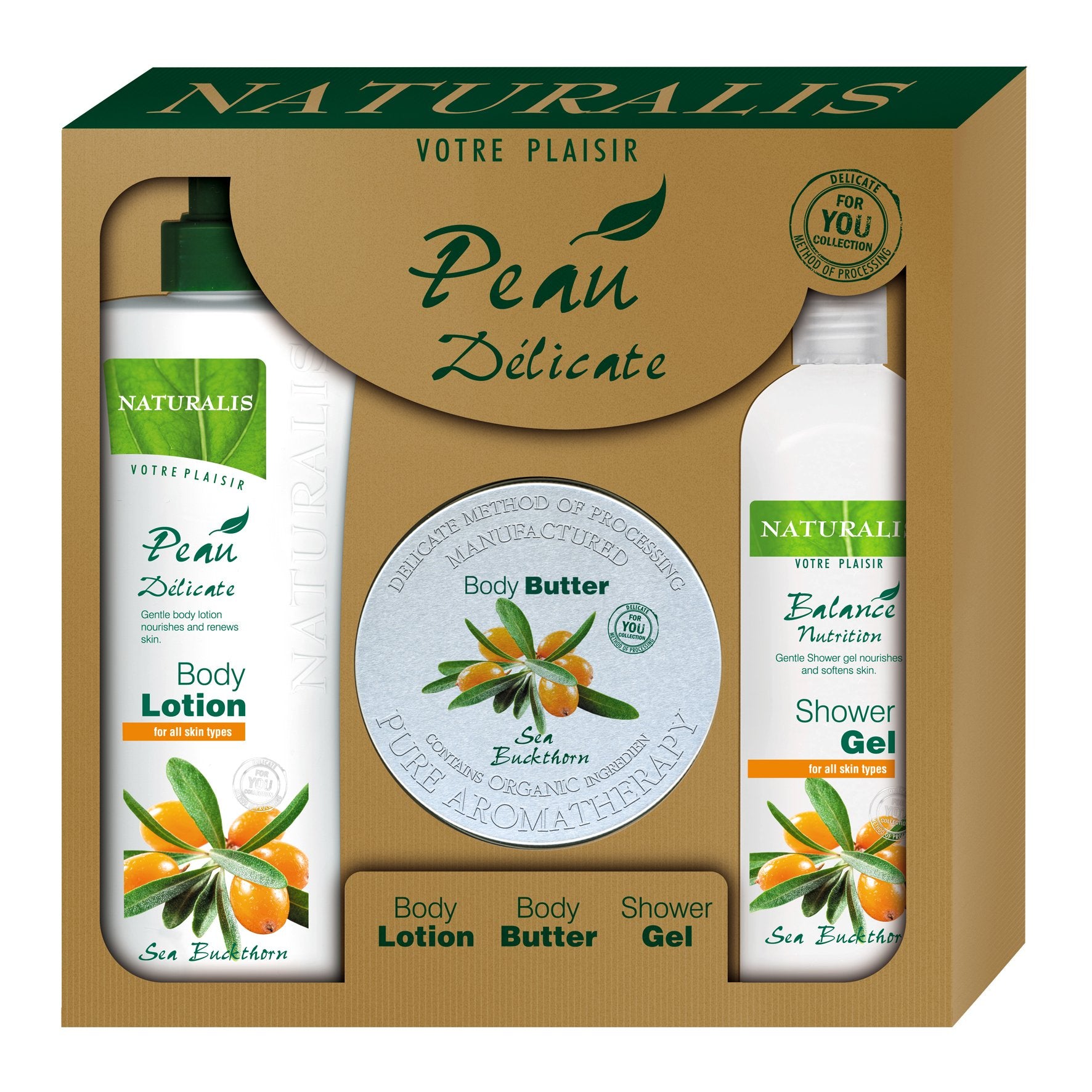 Naturalis balzam na telo + telesné maslo + sprchový gél darčeková sada s rakytníkom 500 ml + 300 g + 400 ml