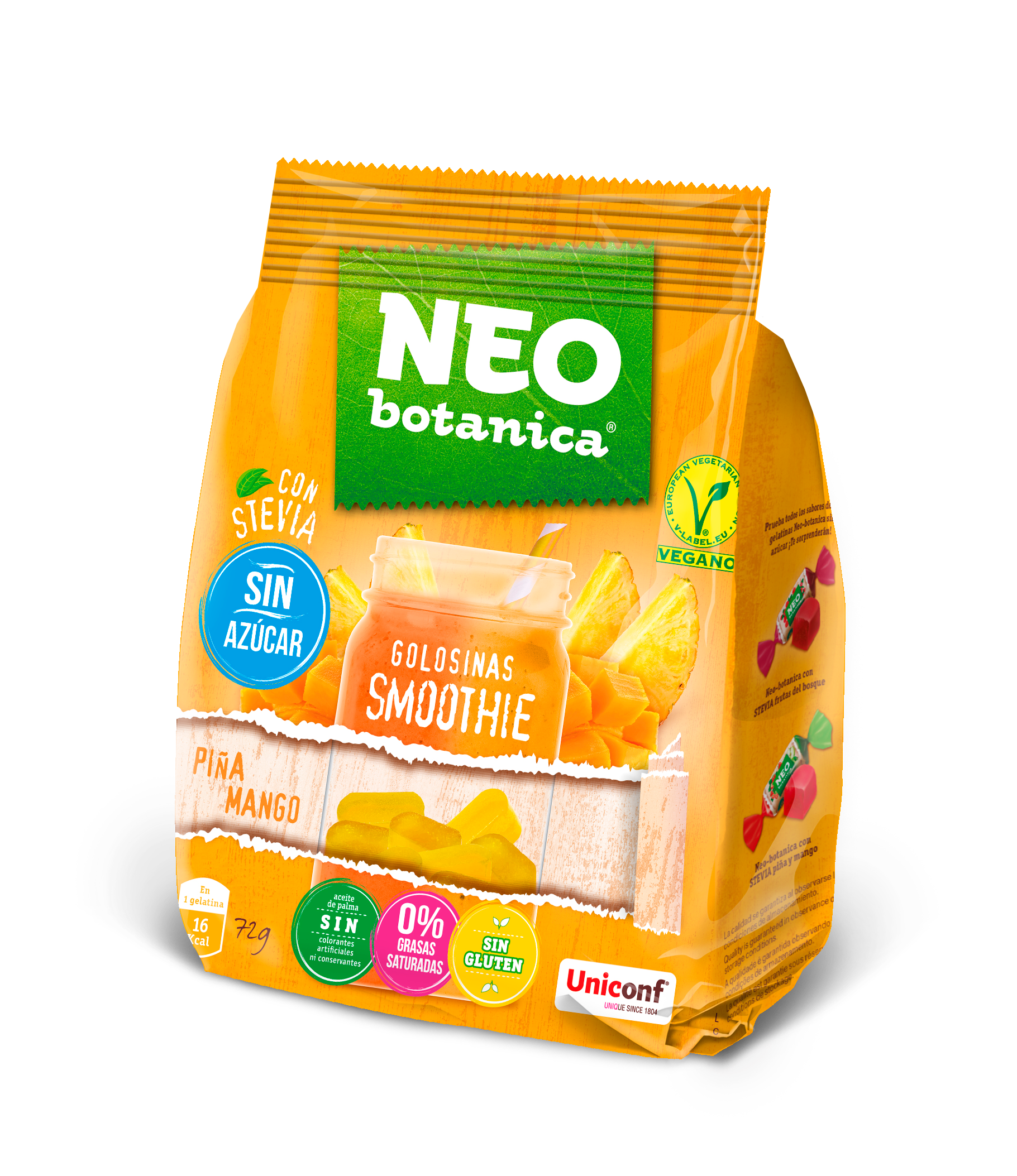 Sladidlá: maltitolový sirup (E965ii) (85%), maltitol (E965i) (7,7%); zvlhčovadlo: glycerín (E422), želírujúca látka: pektín (E440), regulátory kyslosti: kyselina citrónová (E330) a citrát sodný (E331iii); rastlinné oleje: kokosový a repkový, leštiaca látka: karnaubský vosk (E903), farbivo kurkumín (E100), ovocný prášok: mango (0,088%), ananás (0,088%), arómy: ananás, mango, sladidlo: "Stévia (E960) (0,007%)".