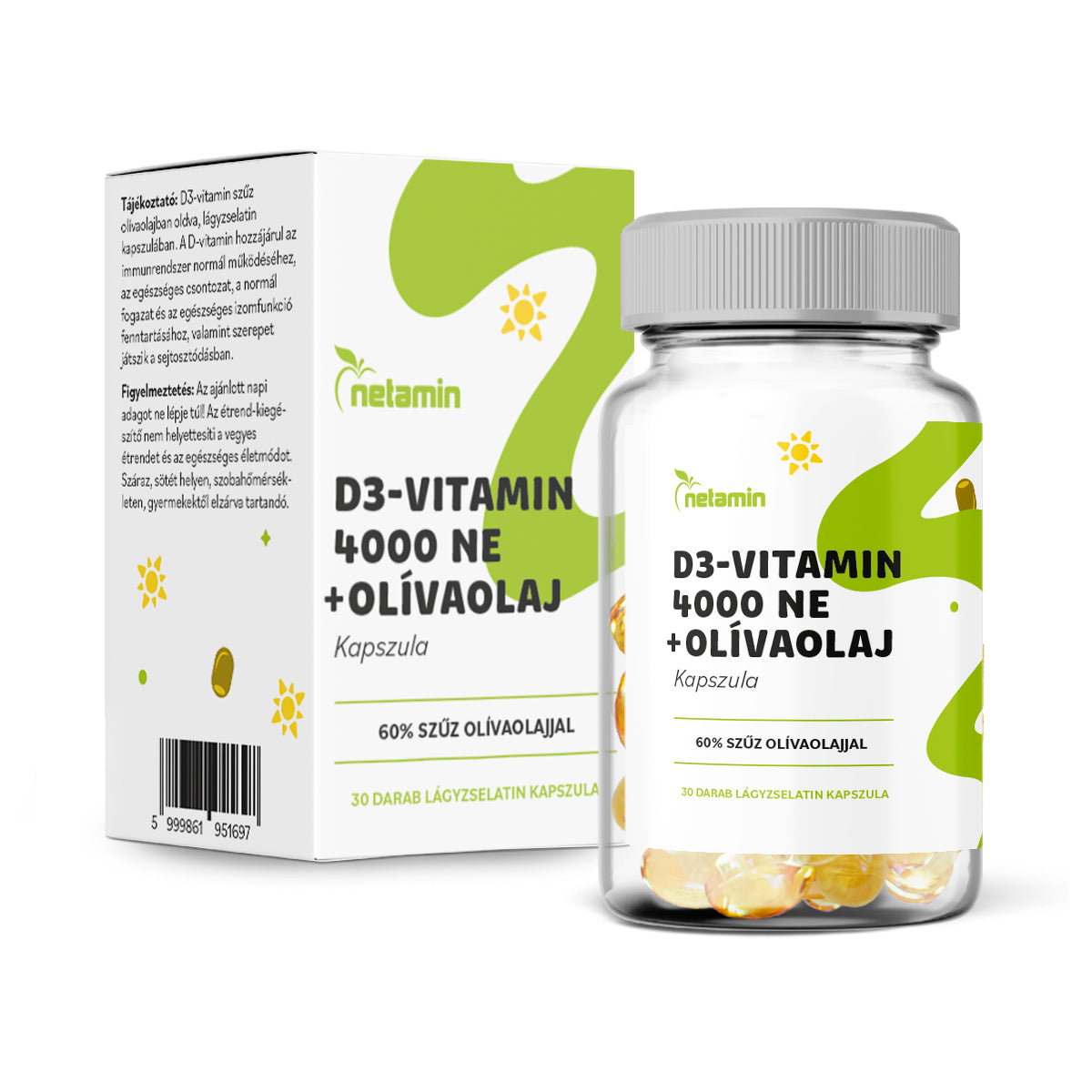 Netamin D3-vitamín 4000 ME + olivový olej kapsula 30/100 kapsúl