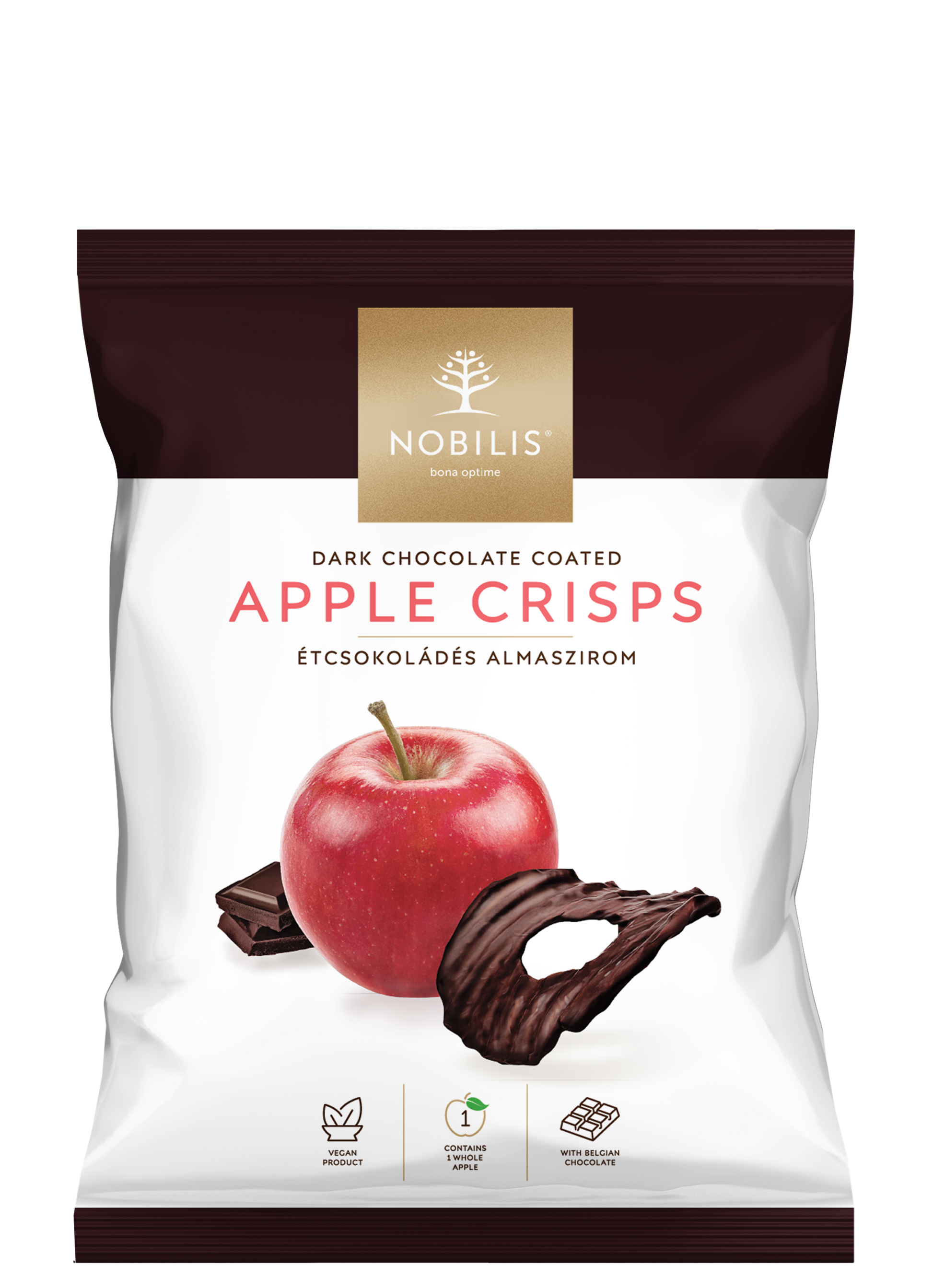 Horká čokoláda (min. 60%) [kakaová hmota, cukor, kakaové maslo, emulgátor (sójový lecitín), prírodná vanilková aróma], jablká jonatán, antioxidant (kyselina citrónová).