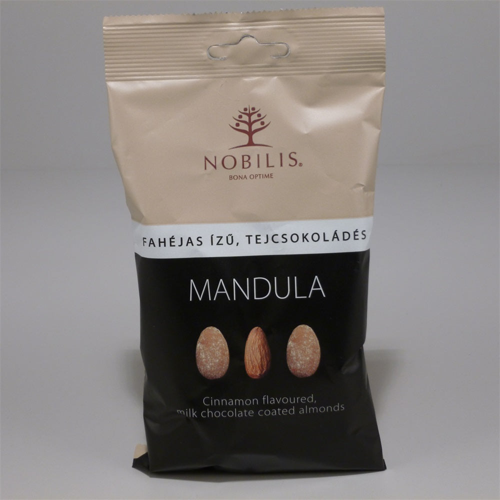 Mliečna čokoláda min.: 50% (cukor, kakaové maslo, kakaová hmota, sušené plnotučné mlieko, sušené odstredené mlieko, emulgátor: sójový lecitín, aróma), pražené, nelúpané mandle, sušené plnotučné mlieko, mletá škorica, mletý koriander, aróma.