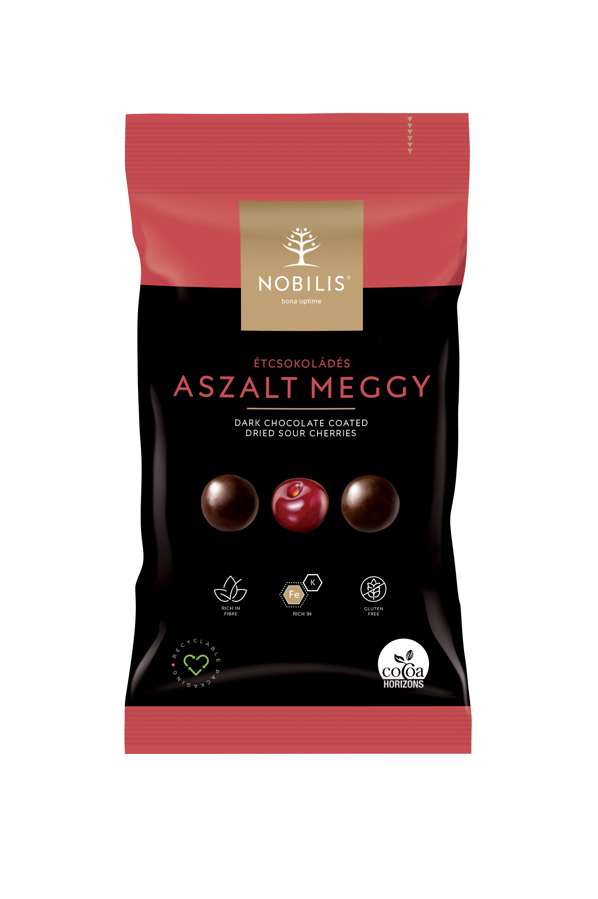 Horká čokoláda min.: 50% (kakaová hmota, cukor, kakaové maslo, emulgátor: sójový lecitín, aróma), sušené, vykôstkované višne, leštiaca látka: šelak, škrob.
