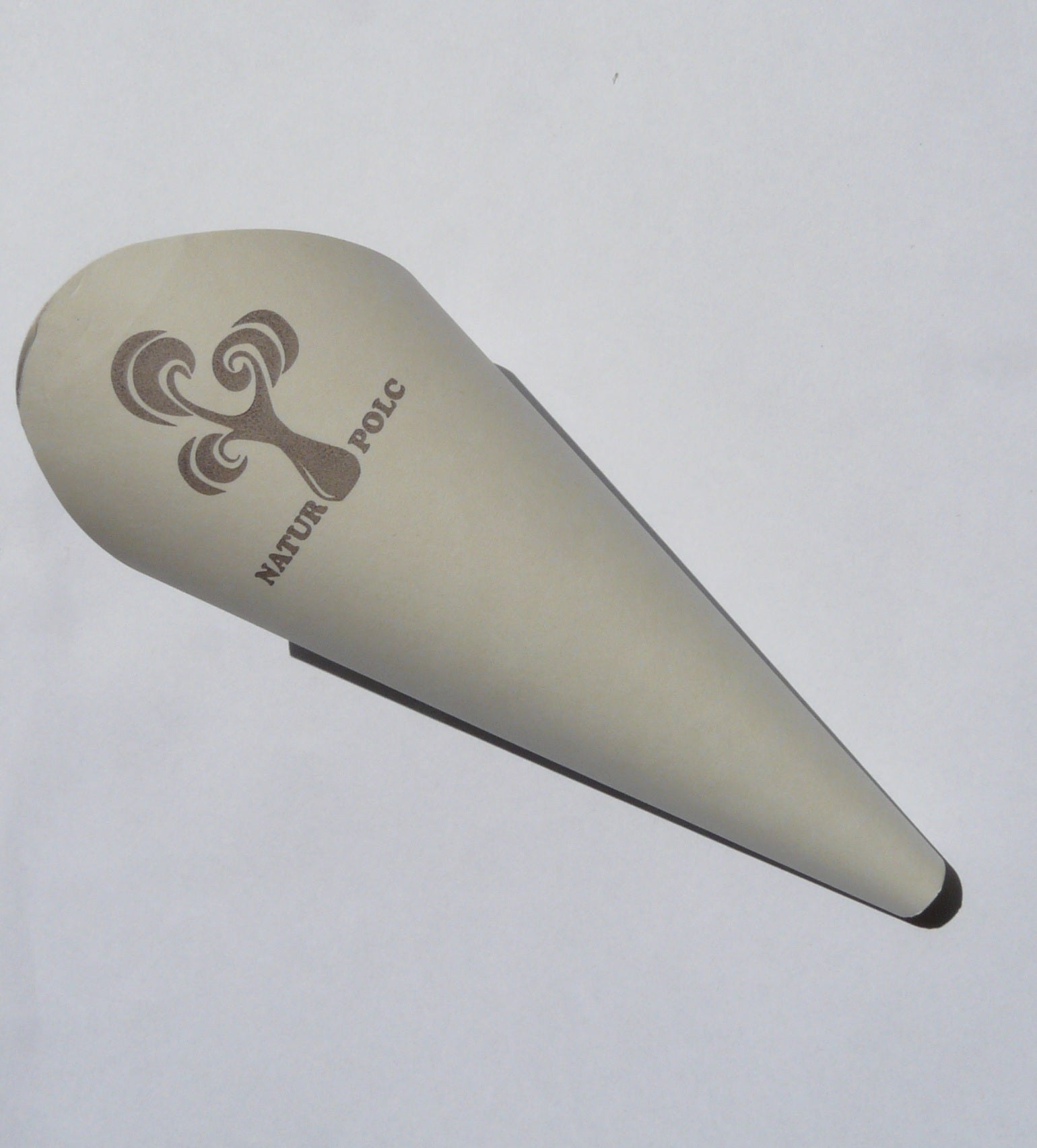 Ekologický lievik na močenie v stoji pre ženy, vyrobený z povrchovo upraveného (vodotesného) papiera.