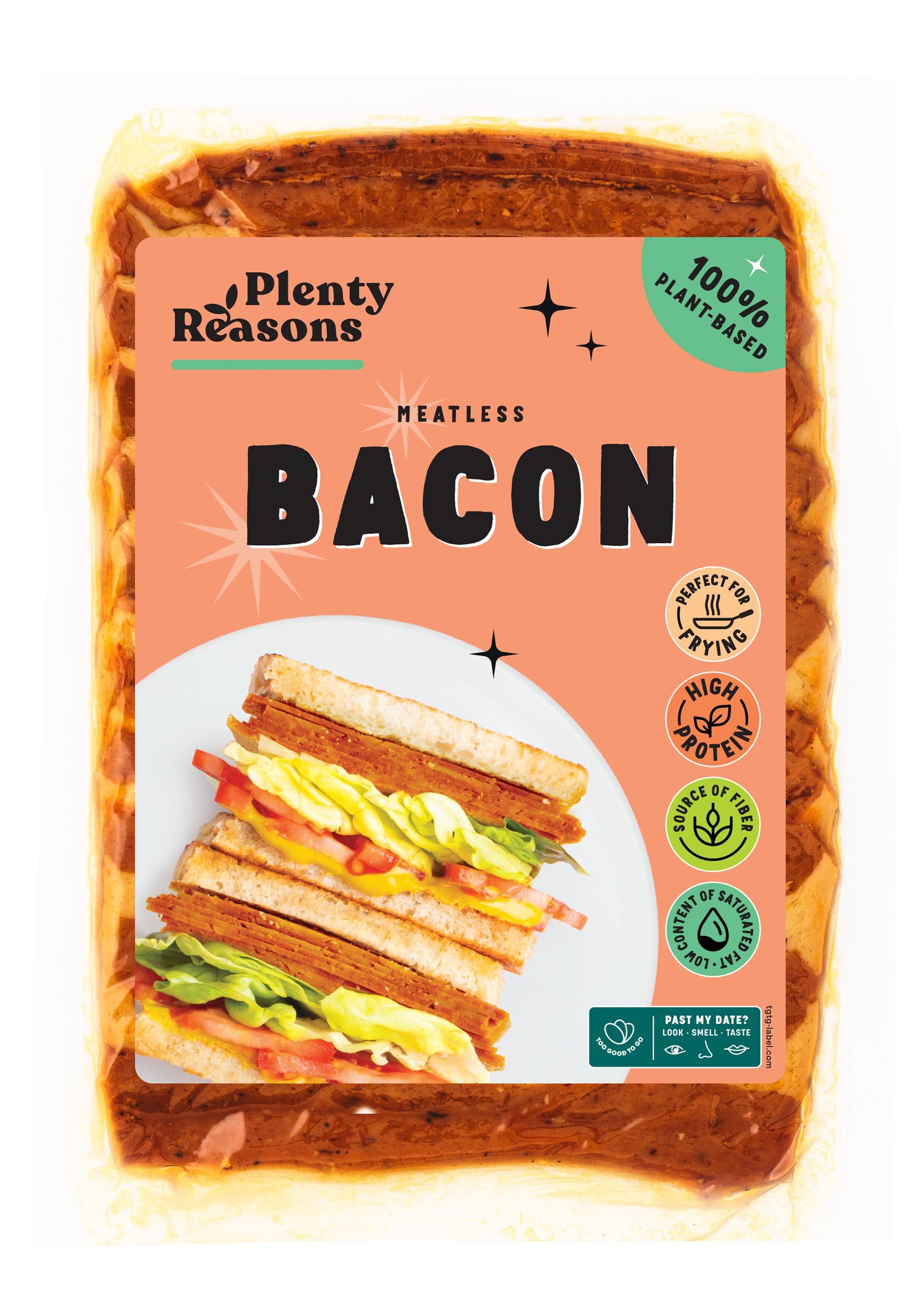100% rastlinný základ, bezmäsový výrobok s chuťou slaniny. Výrobok na báze pšeničnej bielkoviny. Udiený na bukovom dreve. Bez konzervačných látok.