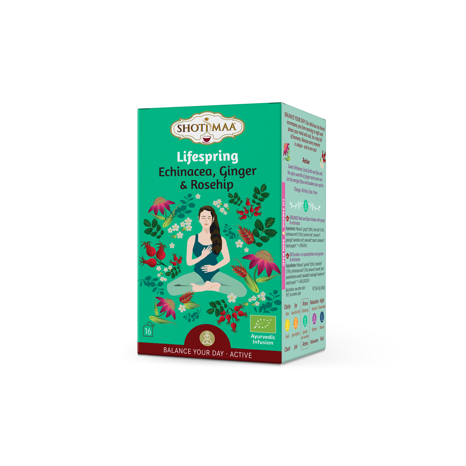 Ibištek, zázvor (20%), šípky (15%), echinacea (12%), koreň kurkumy, škorica, galangal, koreň púpavy, listy stévie, klinčeky, kardamóm.