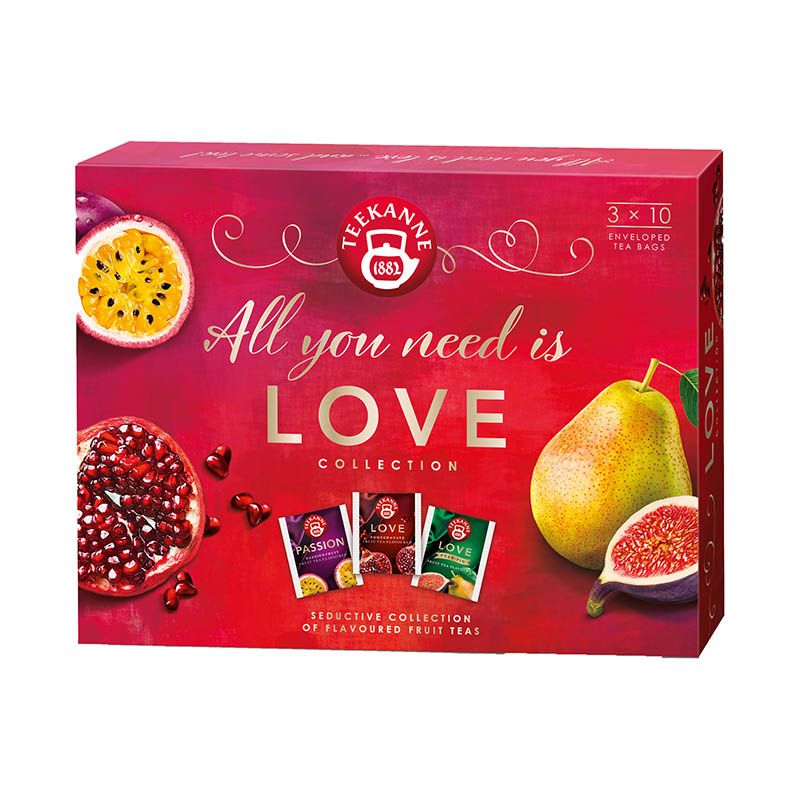 Vynikajúca kolekcia Love od TEEKANNE - vyskúšajte tri výnimočne chutné ovocné čajové kompozície. LOVE s chuťou granátového jablka, PASSION s chuťou maracuje a LOVE Pear&Fig.