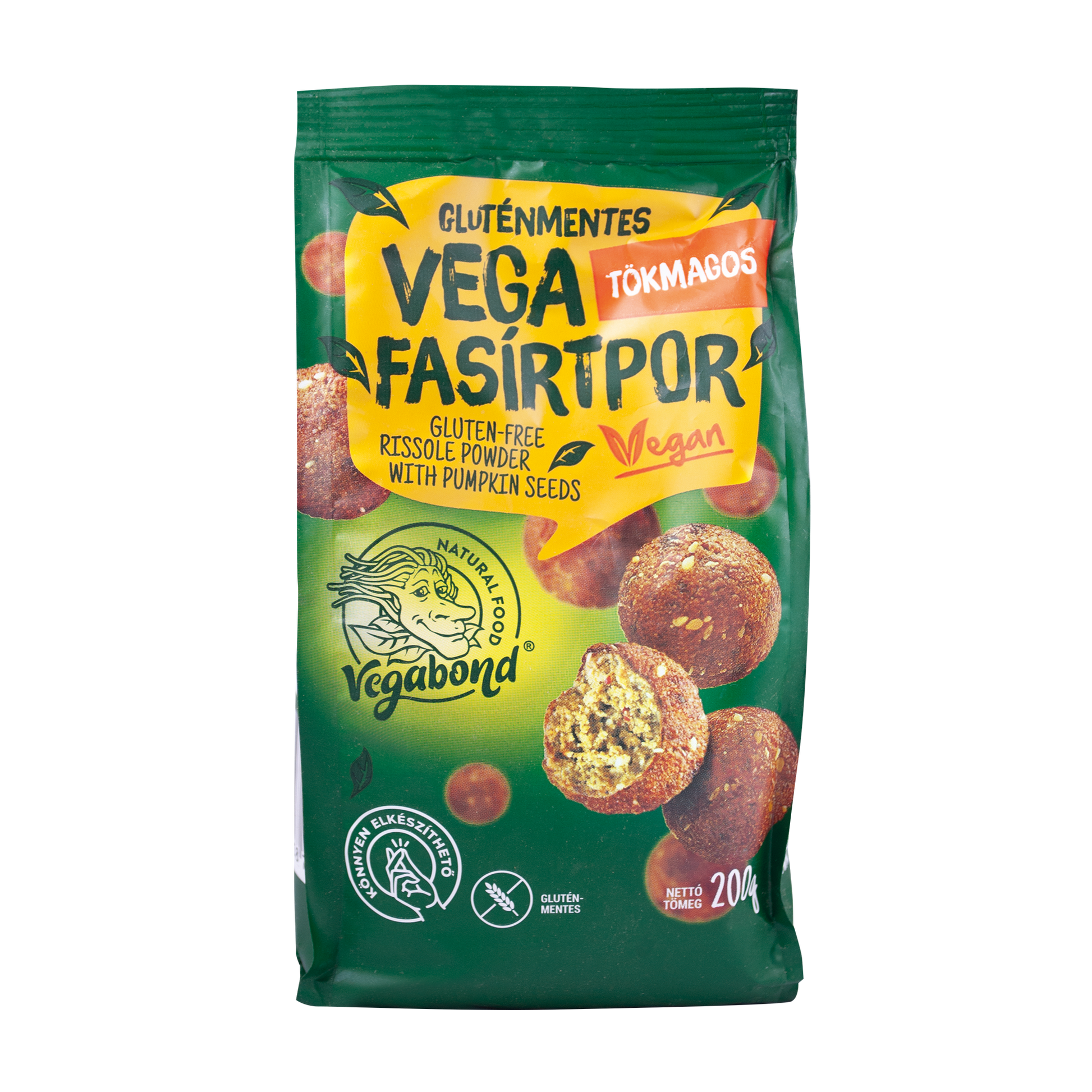Cícerová múka, múka zo žltého hrachu, pohánková múka, slnečnicová krupica, tekvicová krupica (8%), zemiakové vločky, sezamové semienka, granulovaná červená cibuľa, morská soľ, inaktívny kvasnicový prášok, zmes korenia (paprika pritamin, mletá rímska rasca, protihrudkujúca látka (hydrogenuhličitan sodný), mletý zázvor, kari (obsahuje horčičné semienko), mleté čierne korenie, cesnakový prášok).