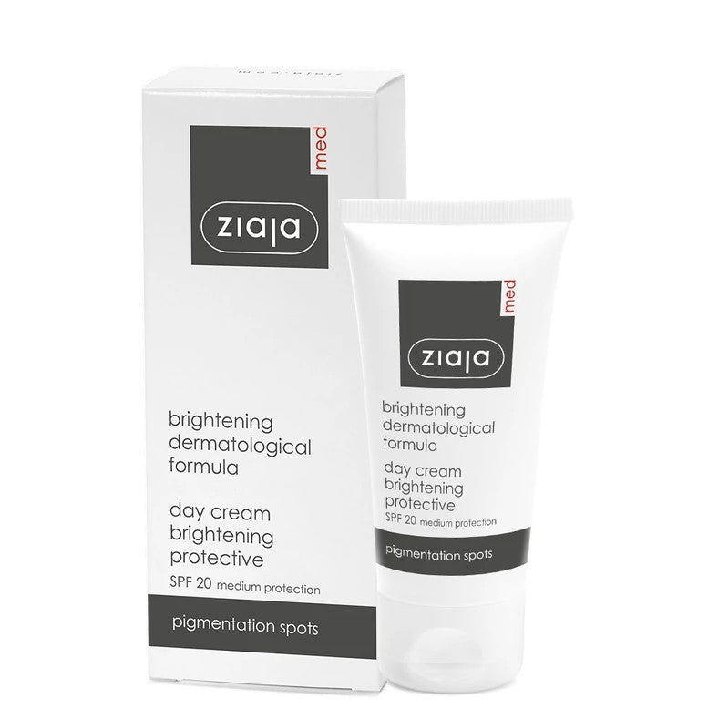 Ziaja Med rozjasňujúci denný krém odstraňuje známky únavy. Každý deň chráni vašu pokožku pred škodlivým UV žiarením, regeneruje pokožku tváre a jeho rozjasňujúci efekt vyrovnáva odtiene pokožky. Reguluje produkciu melanínu a vyrovnáva jeho rozloženie v povrchovej vrstve pokožky.